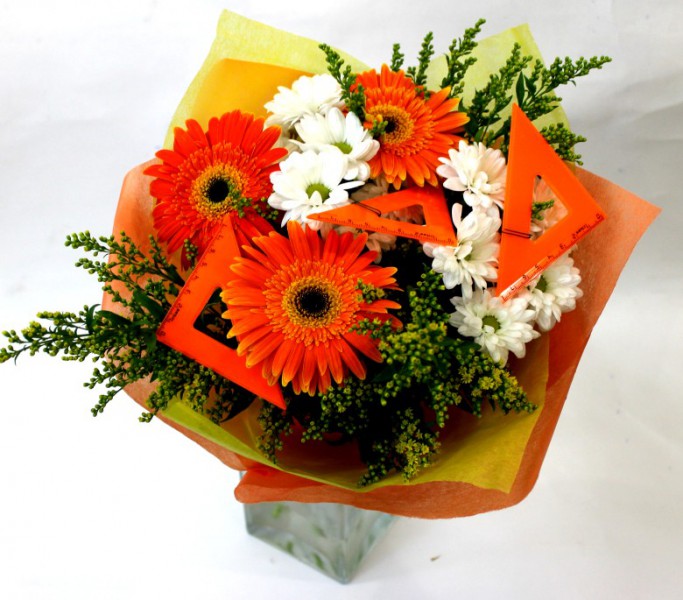 Все букеты этой коллекции имеют яркую цветовую тональность, модную современную форму. Многие букеты украшены яркими ученическими принадлежностями, подчеркивающими смысловую нагрузку такого цветочного подарка.
