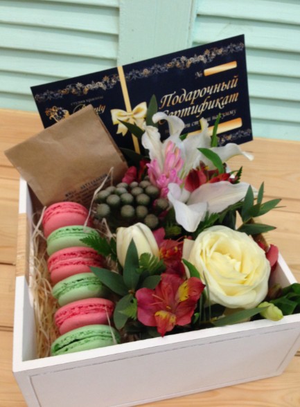 Модные подарки - коробочки и ящички с цветами и макарунами.