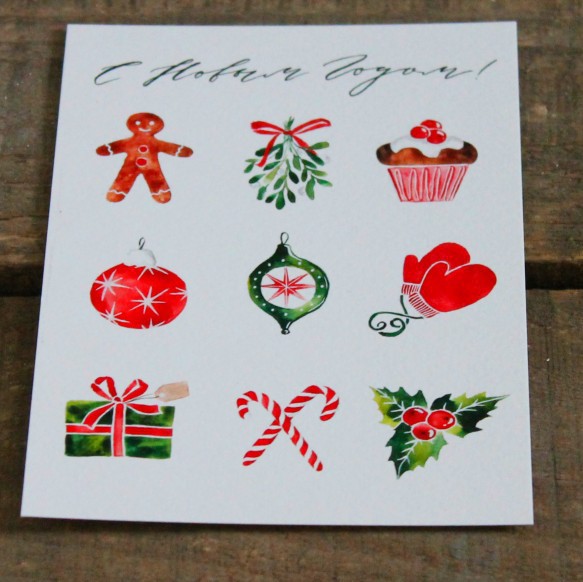 Все открытки нарисованы вручную, а затем уникальное изображение перенесено на открытки.