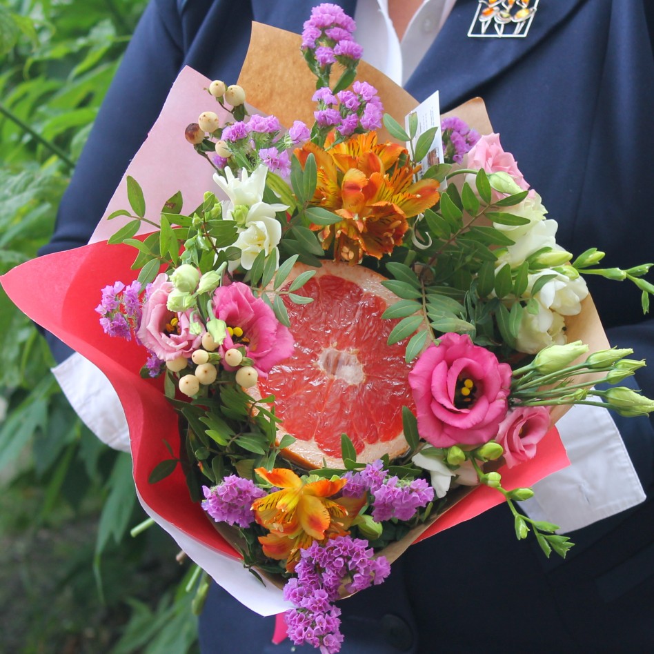 Каталог букетов пополнен новой коллекцией букетов со свежими фруктами. Это очень красиво, смотрите сами!