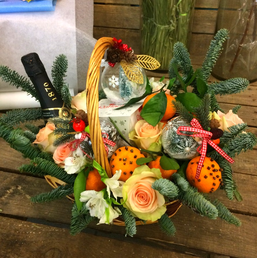 К Новому году была подготовлена целая коллекция новогодних букетов, композиций, сувениров и подарков.