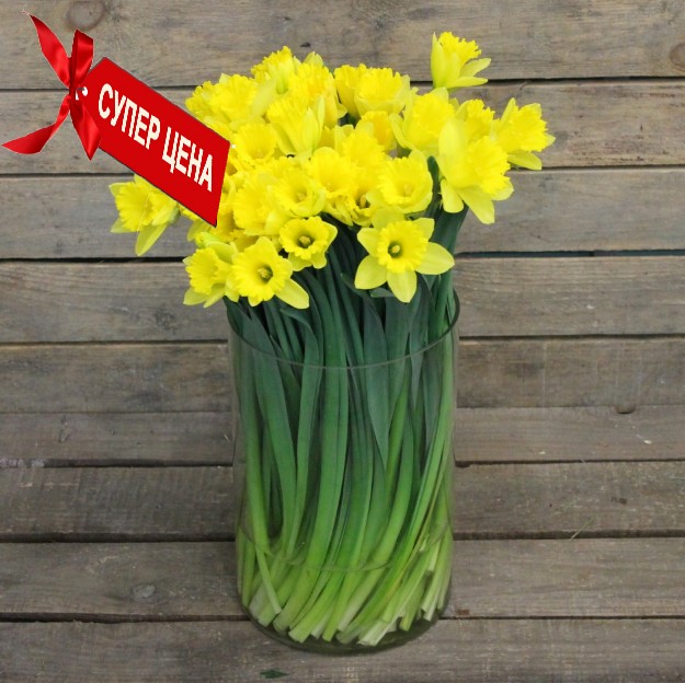 15 желтых тюльпанов в оформлении за 1050 руб.