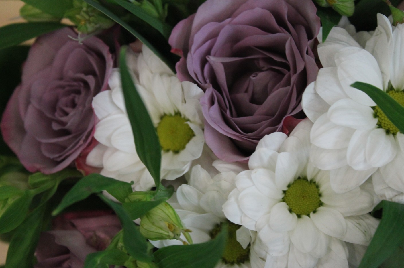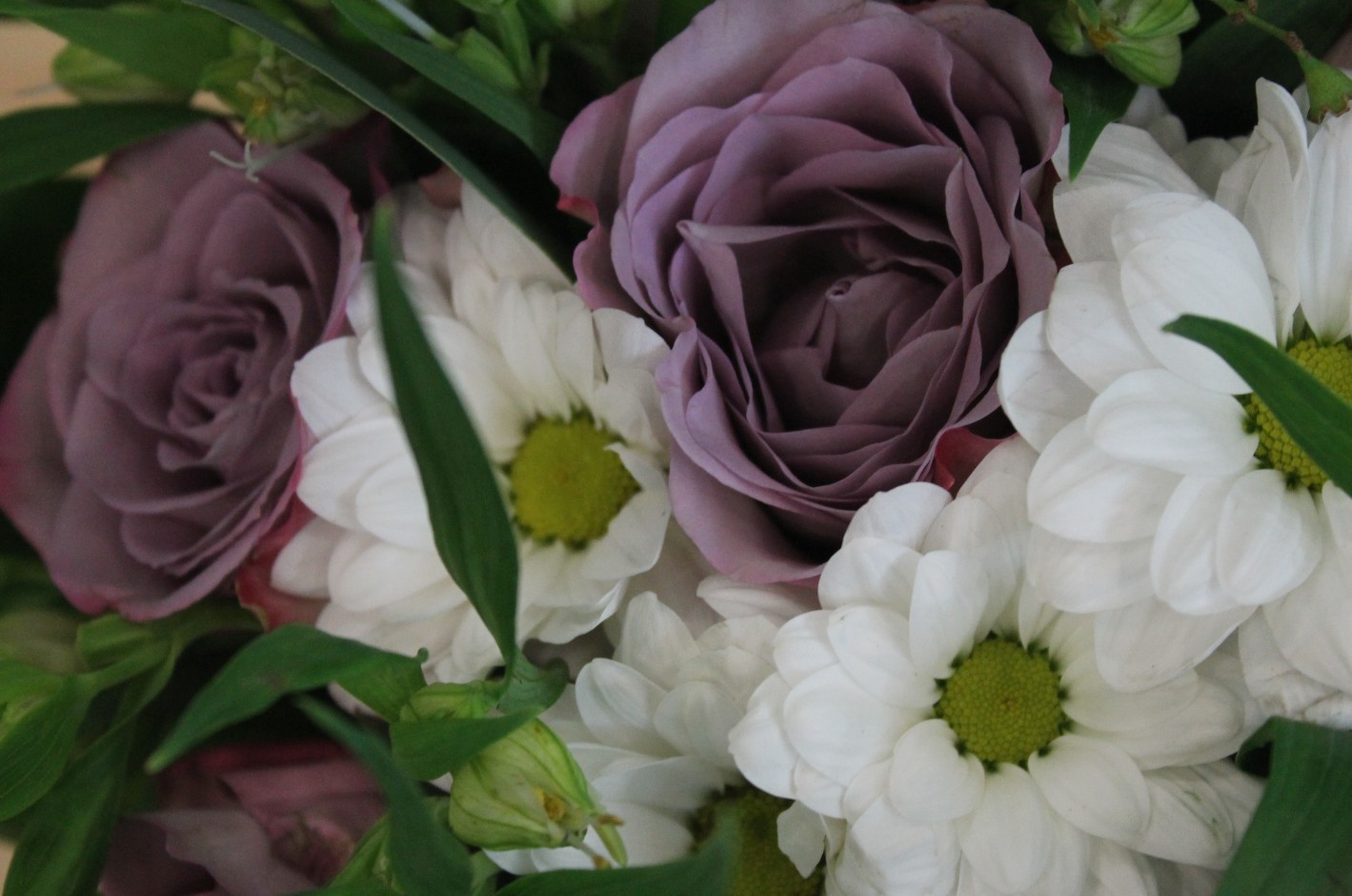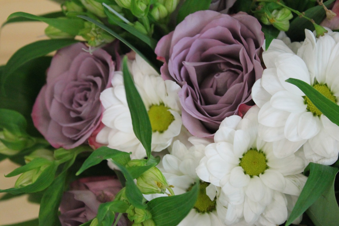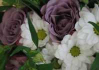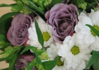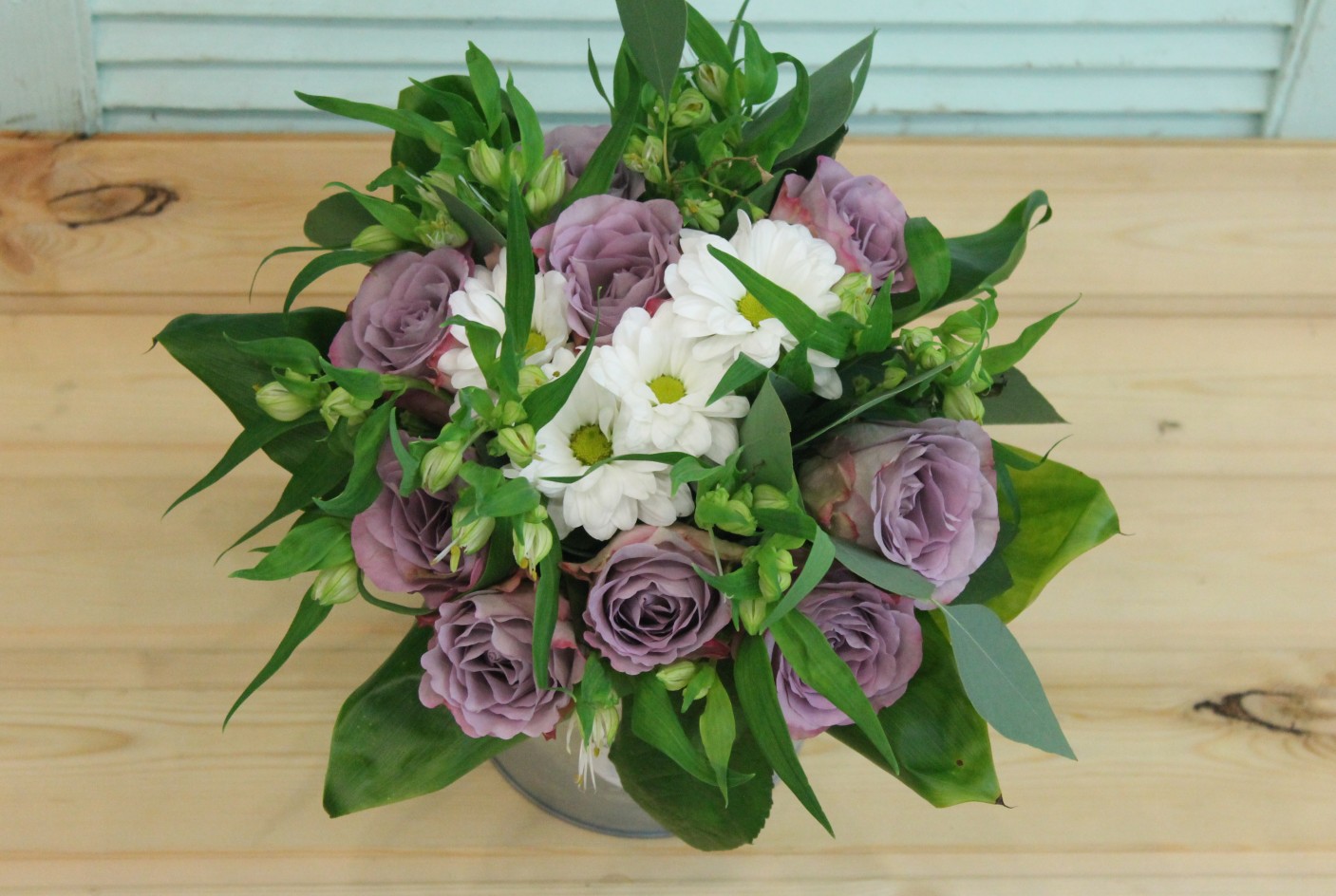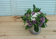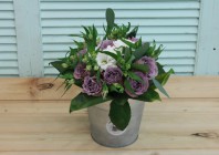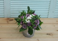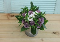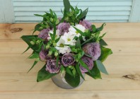 Главная / Наши работы / Фотосессия букета с сиреневыми розами в ведерке