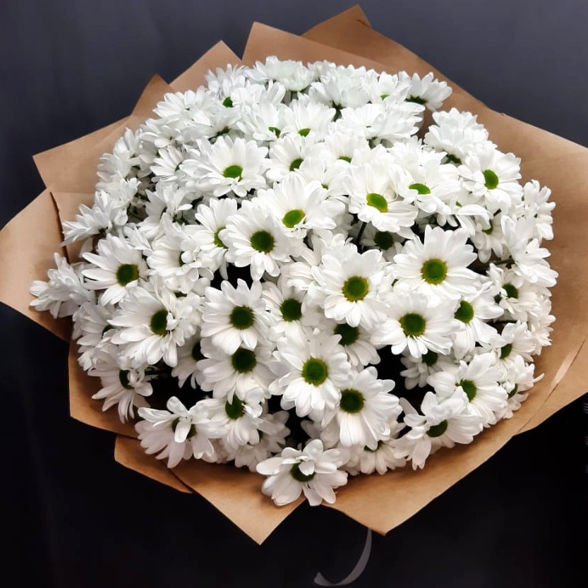 Букет "Полянка" из 19 кустовых хризантем в оформлении