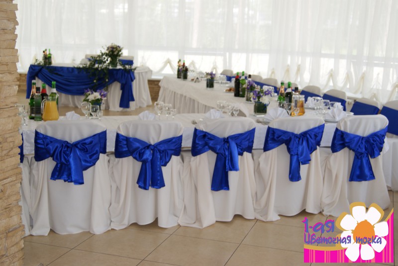 Юбки и драпировки на столах, накидки и банты на стульях должны непременно гармонировать с цветовой гаммой флористических композиций, совпадать с ними по духу и концепции. Достаточно нелепо будут выглядеть композиции из ромашек в рустикальном стиле на фоне тяжелых драпировок в стиле «барокко». Профессиональные флористы, как правило всегда готовы либо рассмотреть варианты текстиля, предлагаемые рестораном, чтобы найти грамотное дизайнерское решение, либо предлагают свои услуги по изготовлению и монтажу текстильного оформления.