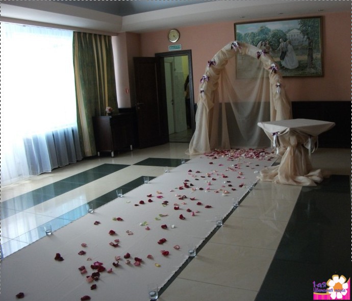 Часто молодожены представляют себе только красивый центральный стол с праздничной сервировкой и цветочным декором. Все пространство свадебного банкета или зала для выездной регистрации не принимается во внимание при заказе флористического оформления. Поэтому иногда свадебный центральный стол доминирует над всем пространством. Он бывает перегружен декоративными элементами, временами становится похож на клумбу. Молодожены тратят достаточное существенные суммы на оформление одного стола. При этом общее впечатление от праздничного пространства остается далеким от настоящего свадебного праздника. Результатом такого подхода становятся не очень выразительные свадебные фотографии. Кроме того, иногда громоздкие композиции на столе молодоженов могут просто скрывать главных действующих лиц этого праздника от части гостей.