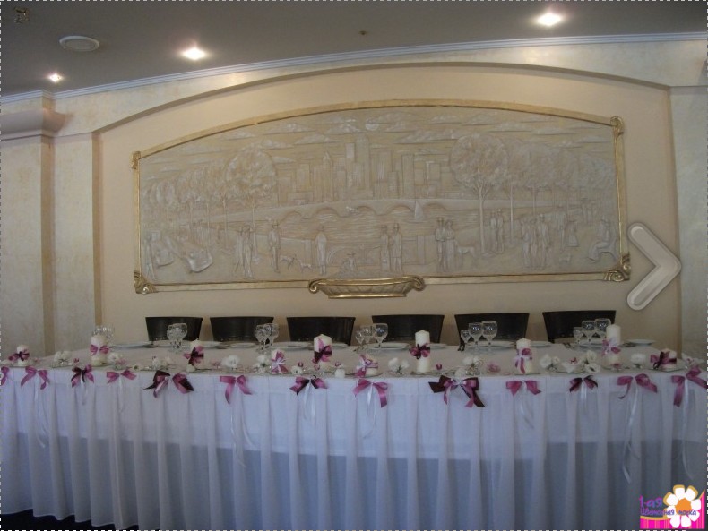 Мы специально для Вашего торжества подберем и изготовим декоративные элементы, юбки и драпировки для столов, банты на стулья.