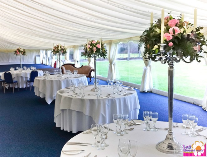 Цветочные композиции на подсвечниках. Оформление свадебного шатра.