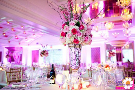 Часто молодожены представляют себе только красивый центральный стол с праздничной сервировкой и цветочным декором. Все пространство свадебного банкета или зала для выездной регистрации не принимается во внимание при заказе флористического оформления. Поэтому иногда свадебный центральный стол доминирует над всем пространством. Он бывает перегружен декоративными элементами, временами становится похож на клумбу. Молодожены тратят достаточное существенные суммы на оформление одного стола. При этом общее впечатление от праздничного пространства остается далеким от настоящего свадебного праздника. Результатом такого подхода становятся не очень выразительные свадебные фотографии. Кроме того, иногда громоздкие композиции на столе молодоженов могут просто скрывать главных действующих лиц этого праздника от части гостей.