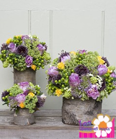 Композиции из разноцветных цветов для свадьбы в рустикальном стиле