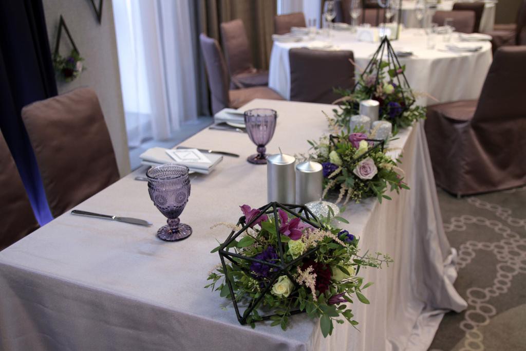 Часто молодожены представляют себе только красивый центральный стол с праздничной сервировкой и цветочным декором. Все пространство свадебного банкета или зала для выездной регистрации не принимается во внимание при заказе флористического оформления. Поэтому иногда свадебный центральный стол доминирует над всем пространством. Он бывает перегружен декоративными элементами, временами становится похож на клумбу. Молодожены тратят достаточное существенные суммы на оформление одного стола. При этом общее впечатление от праздничного пространства остается далеким от настоящего свадебного праздника. Результатом такого подхода становятся не очень выразительные свадебные фотографии. Кроме того, иногда громоздкие композиции на столе молодоженов могут просто скрывать главных действующих лиц этого праздника от части гостей.