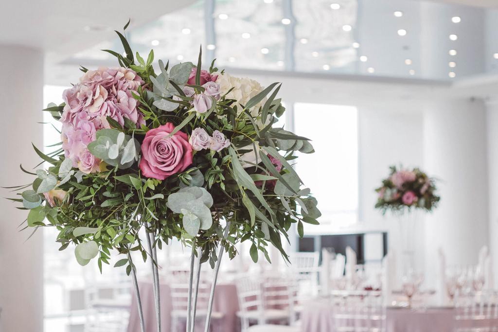 Часто молодожены представляют себе только красивый центральный стол с праздничной сервировкой и цветочным декором. Все пространство свадебного банкета или зала для выездной регистрации не принимается во внимание при заказе флористического оформления. Поэтому иногда свадебный центральный стол доминирует над всем пространством. Он бывает перегружен декоративными элементами, временами становится похож на клумбу. Молодожены тратят достаточное существенные суммы на оформление одного стола. При этом общее впечатление от праздничного пространства остается далеким от настоящего свадебного праздника. Результатом такого подхода становятся не очень выразительные свадебные фотографии. Кроме того, иногда громоздкие композиции на столе молодоженов могут просто скрывать главных действующих лиц этого праздника от части гостей.