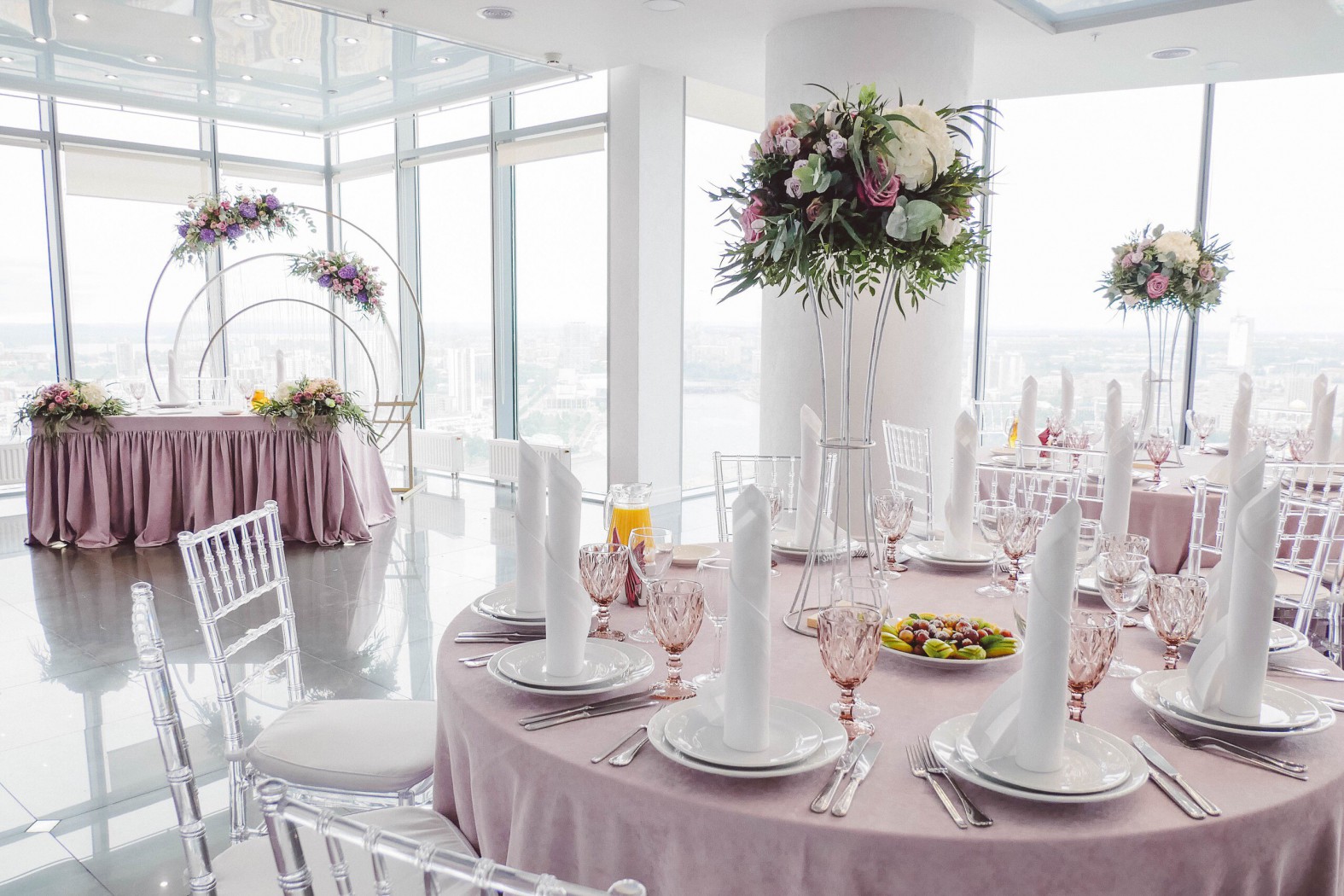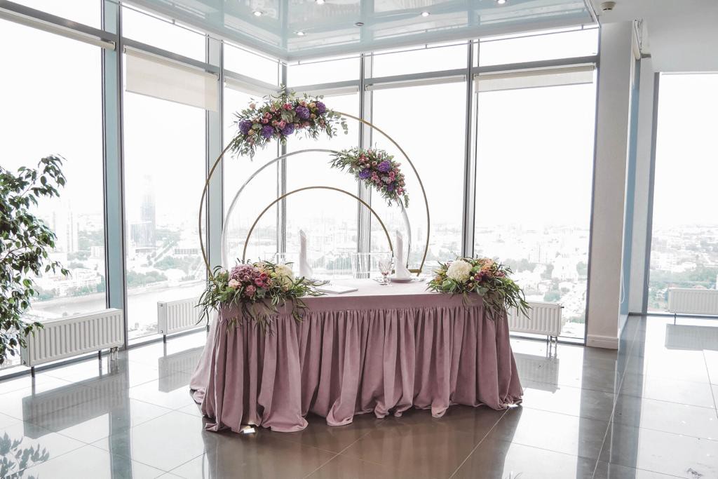 Часто молодожены представляют себе только красивый центральный стол с праздничной сервировкой и цветочным декором. Все пространство свадебного банкета или зала для выездной регистрации не принимается во внимание при заказе флористического оформления. Поэтому иногда свадебный центральный стол доминирует над всем пространством. Он бывает перегружен декоративными элементами, временами становится похож на клумбу. Молодожены тратят достаточное существенные суммы на оформление одного стола. При этом общее впечатление от праздничного пространства остается далеким от настоящего свадебного праздника. Результатом такого подхода становятся не очень выразительные свадебные фотографии. Кроме того, иногда громоздкие композиции на столе молодоженов могут просто скрывать главных действующих лиц этого праздника от части гостей.